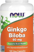 NOW Foods Ginkgo Biloba Supports Brain Health 60 mg 120 Veg Caps
