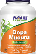 NOW Foods DOPA Mucuna Standardized Mucuna Extract with Naturally Occurring 15% L-Dopa, 180 Veg Caps