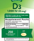 Nature's Truth, High Potency Vitamin D3, 25 mcg (1000 IU), 250 Quick Softgels