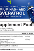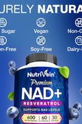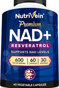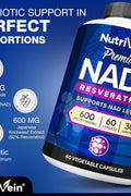 Nutrivein Premium NAD + Resveratrol 600 mg Aging Cognition Metabolism Overall Well-Being 60 Caps