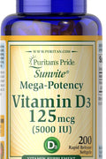 Puritan's Pride Vitamin D3 125 mcg 5000 IU 200 Softgels