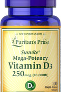 Puritan's Pride Vitamin D3 250 mcg (10000 IU), 100 Softgels